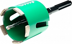 - Возможно использование с центровочным твердосплавным сверлом и различными переходниками (М16 – Шестигранник, М16 – SDS-Plus, М16 – SDS-Max)