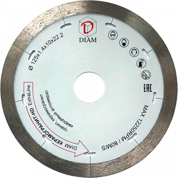 Цена и технические характеристики алмазного отрезного круга Diam Extra Line 1A1R Корона Керамогранит-HD 125 мм: