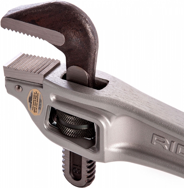 Алюминиевый коленчатый трубный ключ Ridgid Aluminum OffSet Heavy Duty 24" (Риджид Алюминум ОффСет Хэви Дьюти 24") предназначен для труб Ø до 80 мм (3"), идеально подходит для больших нагрузок и работы в труднодоступных местах.