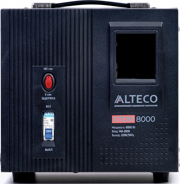 Автоматический cтабилизатор напряжения Alteco STDR 8000 (Альтеко СТДР 8000) предназначен для обеспечения стабильным напряжением подключенных к нему устройств. Широко используется в бытовых и промышленных сферах для защиты техники от аварийных скачков электроэнергии.