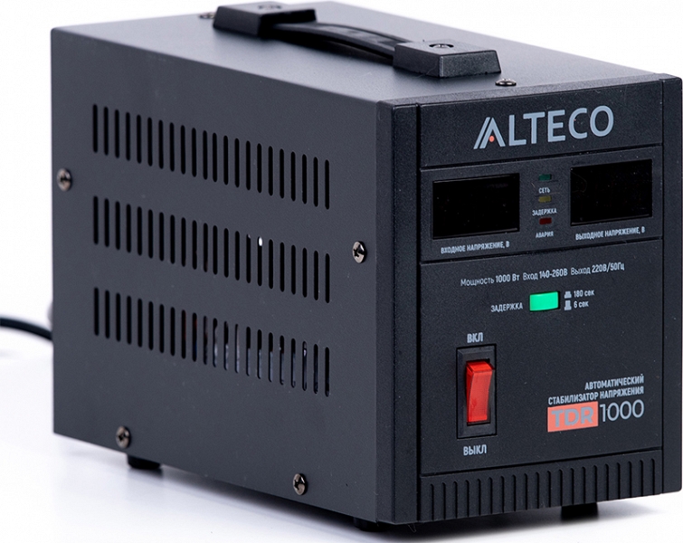 Автоматический cтабилизатор напряжения Alteco TDR 1000 (Альтеко ТДР 1000) предназначен для обеспечения стабильным напряжением подключенных к нему устройств. Широко используется в бытовых и промышленных сферах для защиты техники от аварийных скачков электроэнергии.