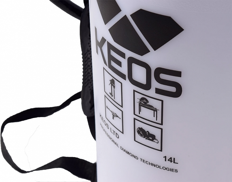 Модель снята с производства! Бак для подачи воды под давлением Keos Professional 14 л (Кеос Профессионал 14 л) – ручной механический водяной насос для подачи воды под давлением в отсутствии доступа к централизованному водоснабжению на строительном объекте. При помощи ручной помпы в зону алмазной резки или бурения алмазной техники подается вода под давлением для охлаждения режущей части алмазных коронок или дисков, а также уменьшения количества пыли и вымывания шлама из отверстий. Применяется с установками алмазного бурения, ручными резчиками, камнерезными станками и другой алмазной техникой.