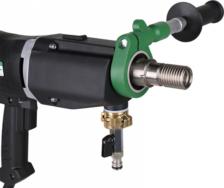 - Возможность сверления как со станины, так и "с рук": наличие кольца 60 мм для крепления на станину и пистолетной рукоятки с дополнительной регулируемой передней ручкой для сверления без штатива