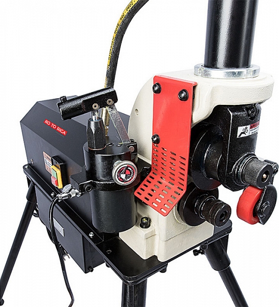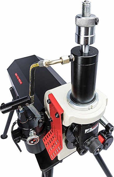 Электрический гидравлический желобонакатчик Rotorica Roller RG-12XS (Роторика Роллер РГ-12ХС) – с модернизированным ручным гидравлическим насосом – грувлочный желобонакатной станок с модернизированной ручной гидравлической подачей накатывающего ролика для накатки канавок (желобков) на углеродистых стальных и нержавеющих стальных трубах из углеродистой стали и нержавеющей стали Ø 1" – 12" (25 – 300 мм) sch. 10/40, толщиной стенки до 10 мм при монтаже водопроводных, отопительных, пожарных и промышленных трубопроводов без применения сварки. Идеально подходит для тяжелых работ на стройплощадке и производстве.
