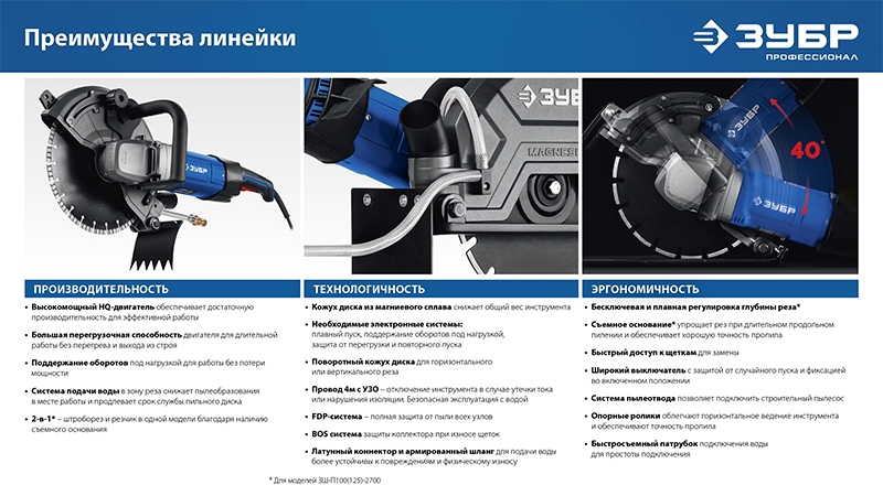 Преимущества электрического резчика по бетону Зубр Профессионал РЭ-2700-300: