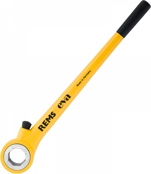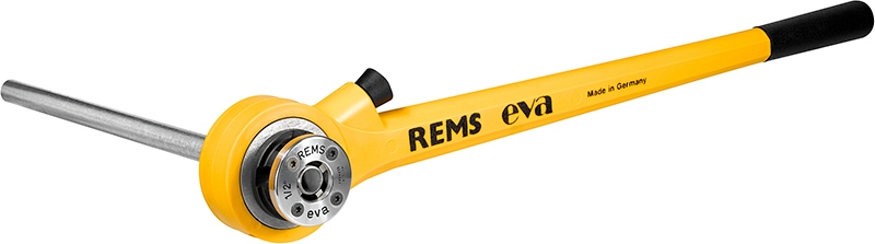 Храповый рычаг для резьбонарезных головок Rems Eva 1/8"-2" (Ремс Ева 1/8"-2") – ручная резьбонарезная трещотка с рукоятью для нарезания правой / левой, трубной, конической резьбы R / R LH (ISO 7-1, EN 10226 (DIN 2999, BSPT)), NPT (Taper Pipe Thread ASME B1.20.1) на стальных Ø 1/8", 1/4", 3/8", 1/2", 3/4", 1", 1 1/4", 1 1/2", 2" и правой, трубной, метрической резьбы M (EN 60423) на электроизоляционных трубах Ø 16, 20, 25, 32, 40, 50 мм; болтовой резьбы M 6 – 30 (Pg 7 – 29), G 1 1/4", Pg 21 – 48 на болтах, шпильках, стержнях, штуцерах.