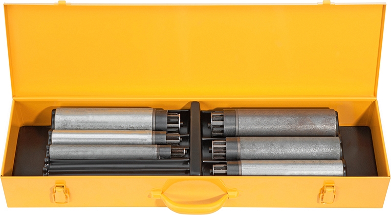 Комплект автоматических зажимов для коротких труб Rems Nippelfix Set 1/2"-3/4"-1"-1 1/4" (Ремс Ниппельфикс Сет 1/2"-3/4"-1"-1 1/4") – внутризажимные трубные ниппельные держатели с внутренним автоматическим зажимом для коротких отрезков (остатков, кусков) труб Ø 1/2", 3/4", 1", 1 1/4". Для резьбонарезных станков с открывающимися резьбонарезными головками: для токарных резьбонарезных станков, станков с вращающейся резьбонарезной головкой и устройств для нарезания резьбы.
