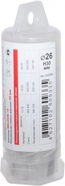 Цена и технические характеристики корончатого сверла по металлу Diam HSS 26×30мм: