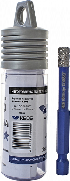 Цена и технические характеристики коронки алмазной по керамограниту Keos Professional Vacuum Brazed 1/4" HEX 6 мм: