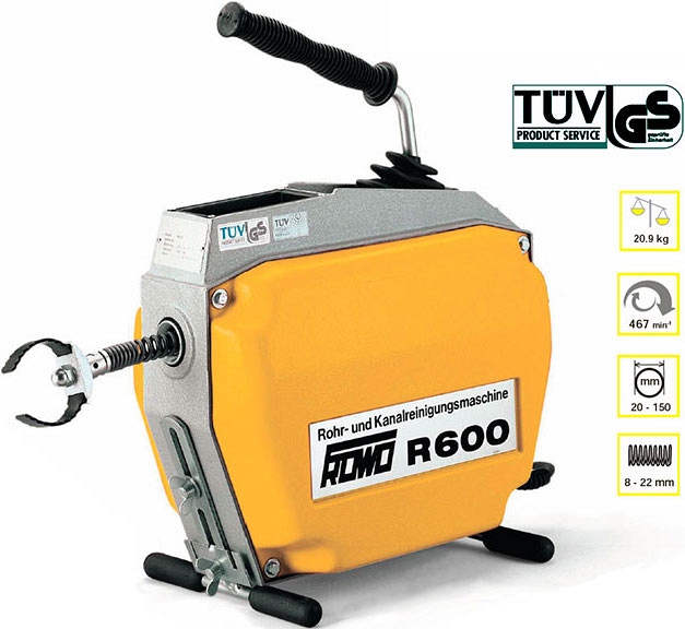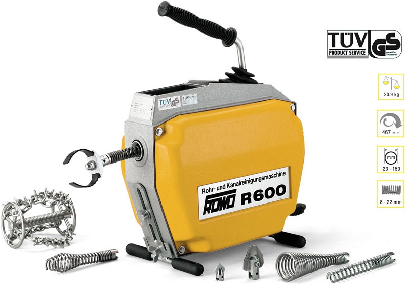Машина для прочистки канализационных труб Lehmann Rowo R600 (Леман Рово Р600) – универсальная электромеханическая прочистная машина секционного типа для прочистки канализации, труб Ø 20 – 150 мм, длиной до 60 м. Предназначена для слесарей-сантехников, сферы обслуживания. Используется для устранения засоров во внутренних и наружних сетях, в больницах, на объектах ЖКХ и т.д.