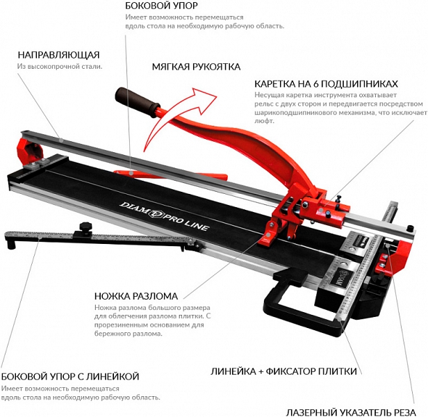 Преимущества плиткореза ручного профессионального Diam ProLine-1000L: