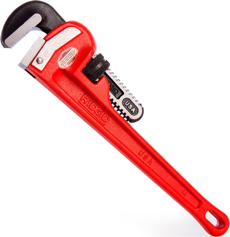 Прямой трубный ключ Ridgid Heavy Duty 14" (Риджид Хэви Дьюти 14") предназначен для больших нагрузок, известен во всем мире своей великолепной прочностью и эксплуатационной надежностью и завоевал признание профессионалов, работающих с трубами Ø до 50 мм (2").