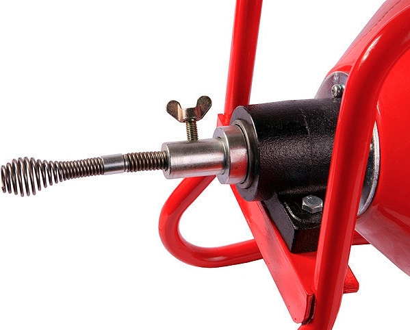 - Ослабьте зажимной винт аппарата, затем вытяните из барабана прочистной трос