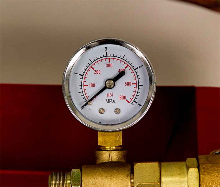 - Постоянство давления в испытываемой системе обеспечивается двумя клапанами и вентилем с шаровыми запорами