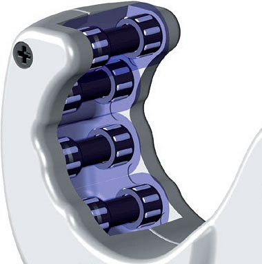- 4 направляющих ролика из нержавеющей стали с игольчатыми подшипниками для лучшего вращения вокруг трубы