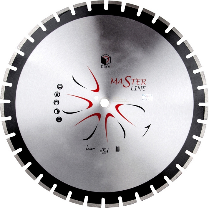 Сегментный алмазный круг Diam Master Line 1A1RSS Асфальт 600 мм (Диам Мастер Лайн 1А1РСС Асфальт 600 мм) – специальный алмазный отрезной диск с лазерной сваркой сегментов для сухой и мокрой резки асфальта, асфальтобетона, пенобетона, абразивного песчаника, кирпича и других абразивов на резчиках швов, стенорезных машинах, камнерезных станках, как с подачей воды, так и без нее.