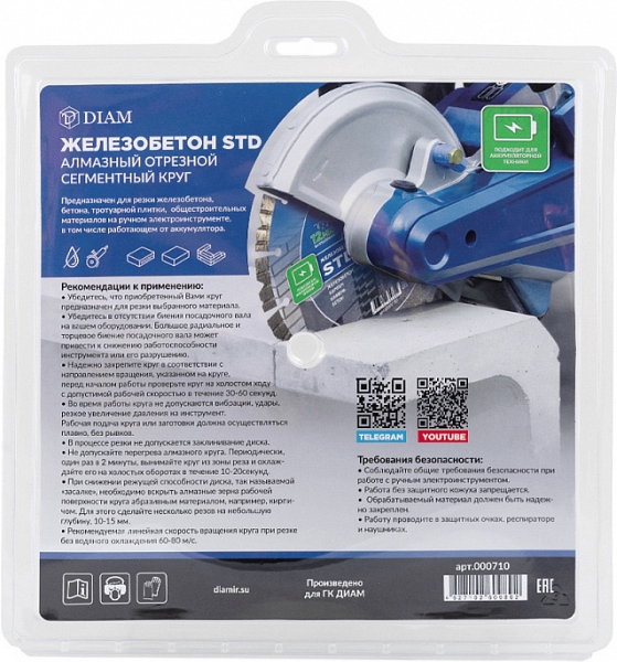 Сегментный алмазный круг Diam STD 1A1RSS Turbo Железобетон 230 мм (Диам СТД 1А1РСС Турбо Железобетон 230 мм) – профессиональный алмазный отрезной диск для сухой резки железобетона, бетона, камня, кирпича на ручном электроинструменте без водяного охлаждения, в том числе на аккумуляторной технике и плиткорезах электрических.