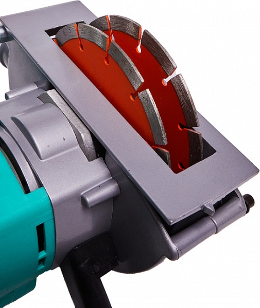 - Мощный 1600 Вт двигатель, высокопрочный редуктор и пара 150 мм дисков: способен уверенно осуществлять рез на глубину 5 – 40 мм