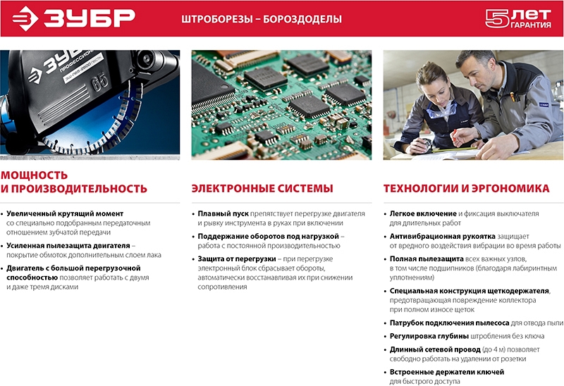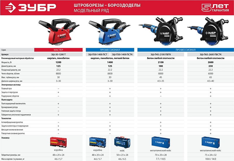 Преимущества штробореза Зубр Профессионал ЗШ-П45-2100 ПВТК: