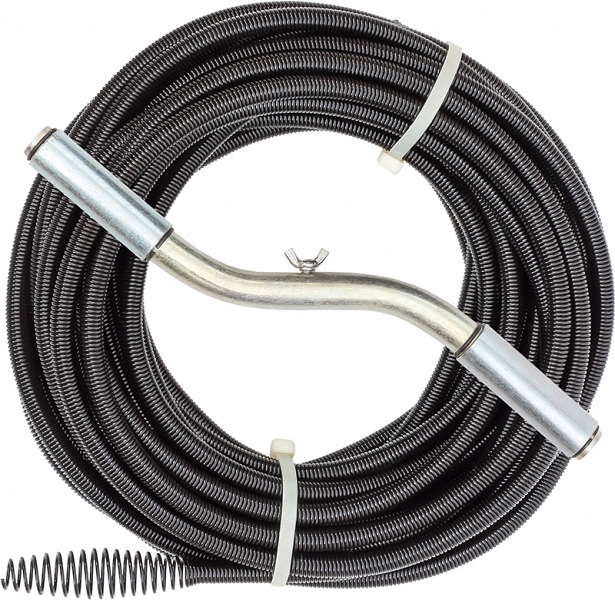 Спираль для прочистки канализации Крокочист 13 мм × 7,6 м (Crocochist 13 mm × 7,6 m) с универсальной насадкой для удаления засоров в канализационных трубах Ø 76 – 150 мм, длиной до 7,6 м. Отлично справляется с такими засорами, как закупорка труб органикой, предметами гигиены, палочками, волосами, мыльным камнем, илом, ватой, пищевыми отходами.
