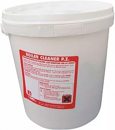 Средство для промывки теплообменников котлов Gel Boiler Cleaner PZ, 10 кг (Гел Бойлер Клинер ПЗ, 10 kg) – неагрессивный, нефумигирующий и некоррозионный (не вызывающий фумиганта и коррозии), недымящий (без дыма), концентрированный порошок для удаления накипи для систем отопления и теплообменников котлов, бойлеров из меди, чугуна, стали, нержавеющей стали, алюминия, латуни, олова, легких сплавов, цинка и оцинкованных поверхностей, для использования с промывочными насосами Boy C и Long Life Superflush.