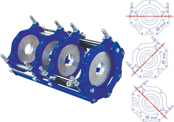 – Возможность работы по схеме 2+2 (два подвижных и два неподвижных хомута) и по схеме 3+1 для сварки фитингов, отводов, Y-образных отводов, тройников, крестовин, соединив 2 и 3 хомут при помощи перекидной планки