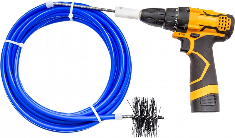 - Подключение к шуруповерту через муфту проскальзывания: подключенный шуруповерт повышает эффективность прочистки в несколько раз