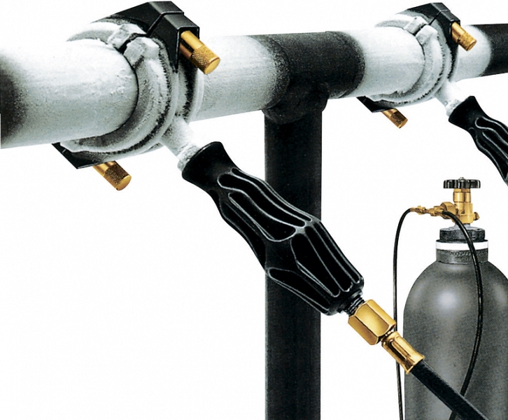 – Плотно прилегающие к трубе манжеты позволяют подавать хладагент непосредственно на трубу, обеспечивая крайне малые сроки заморозки и экономичное потребление хладагента